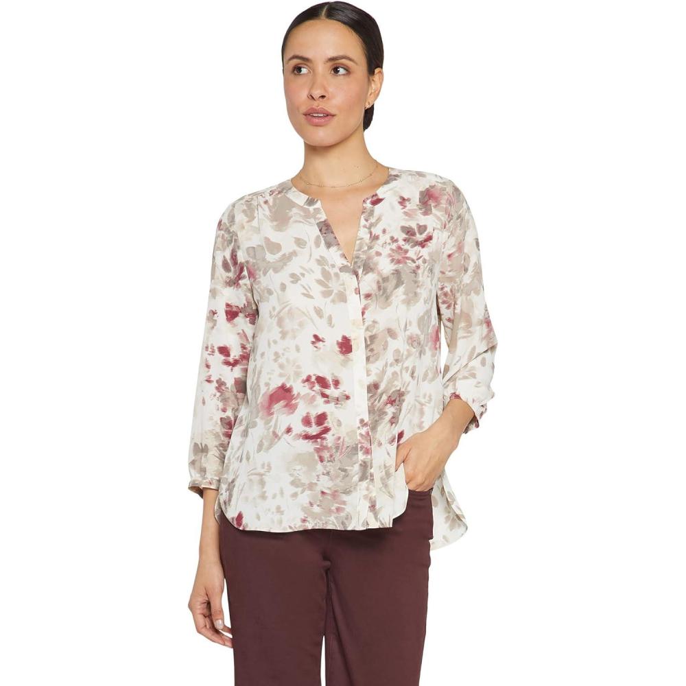 NYDJ Women’s 3/4 Sleeve Pintuck Blouse(Full Bloom Mosaic Pink Dusk)