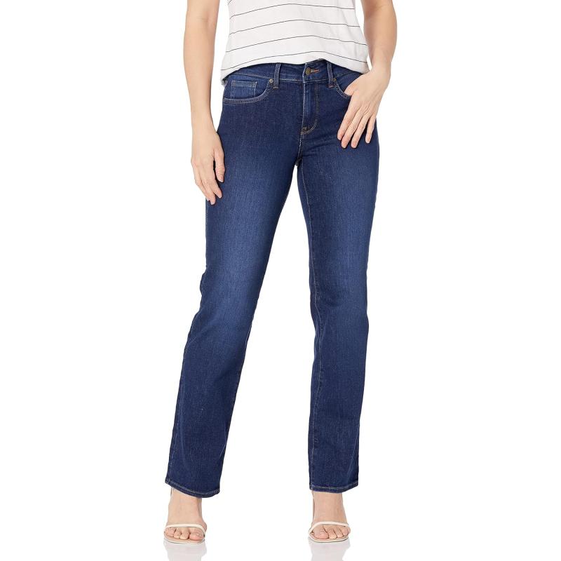 A NYDJ iconic style, the Marilyn straight features light hand sanding and whickering for an authentic denim look. Designed with our legendary lift tuck technology, you get a figure flattering fit. Our patented crisscross panel design flattens and tucks in front and lifts in the back so you'll look and feel one size smaller. With classic five-pocket styling, zip fly with button closure and clean back pockets.
