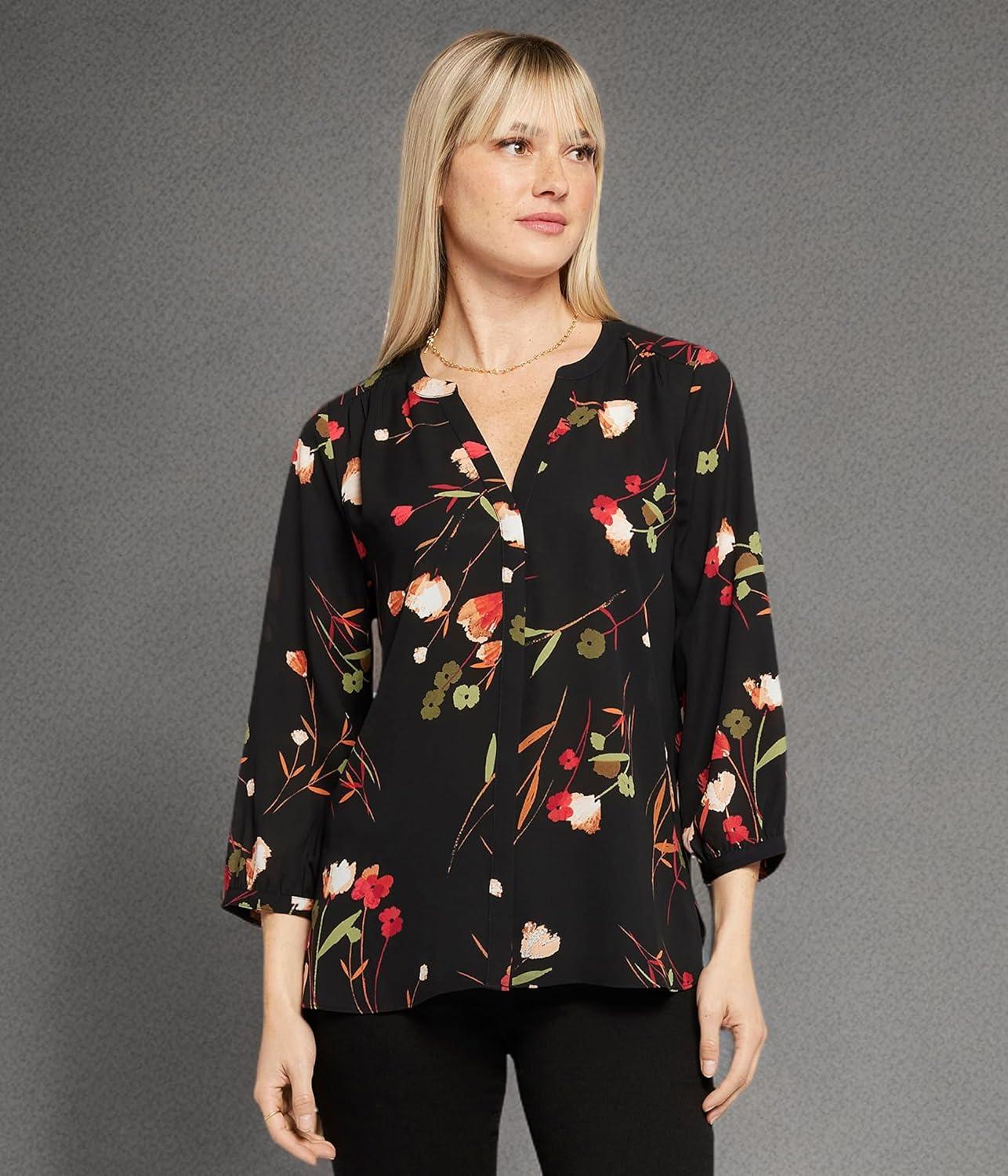 NYDJ womens Pintuck Blouse(Lynbrook Garden)