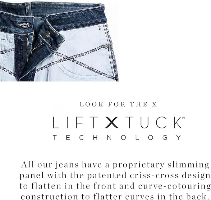 The easy, figure-elongating construction of the NYDJ Marilyn Straight Women's Pull-On Jeans pairs well with everything, thanks to a flattering waist and a versatile, straight-leg fit. Lift Tuck Technology uses a proprietary slimming panel with a patented crisscross design to shape and support your curves for an always-sleek silhouette, so you can look, feel and wear one size smaller. Finished with back pockets and a pull-on waistband for greater comfort.